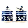 KHURJA POTTERY Ceramic Mughal Art Painting Multipurpose Jar Set of 2 350 Ml Blue