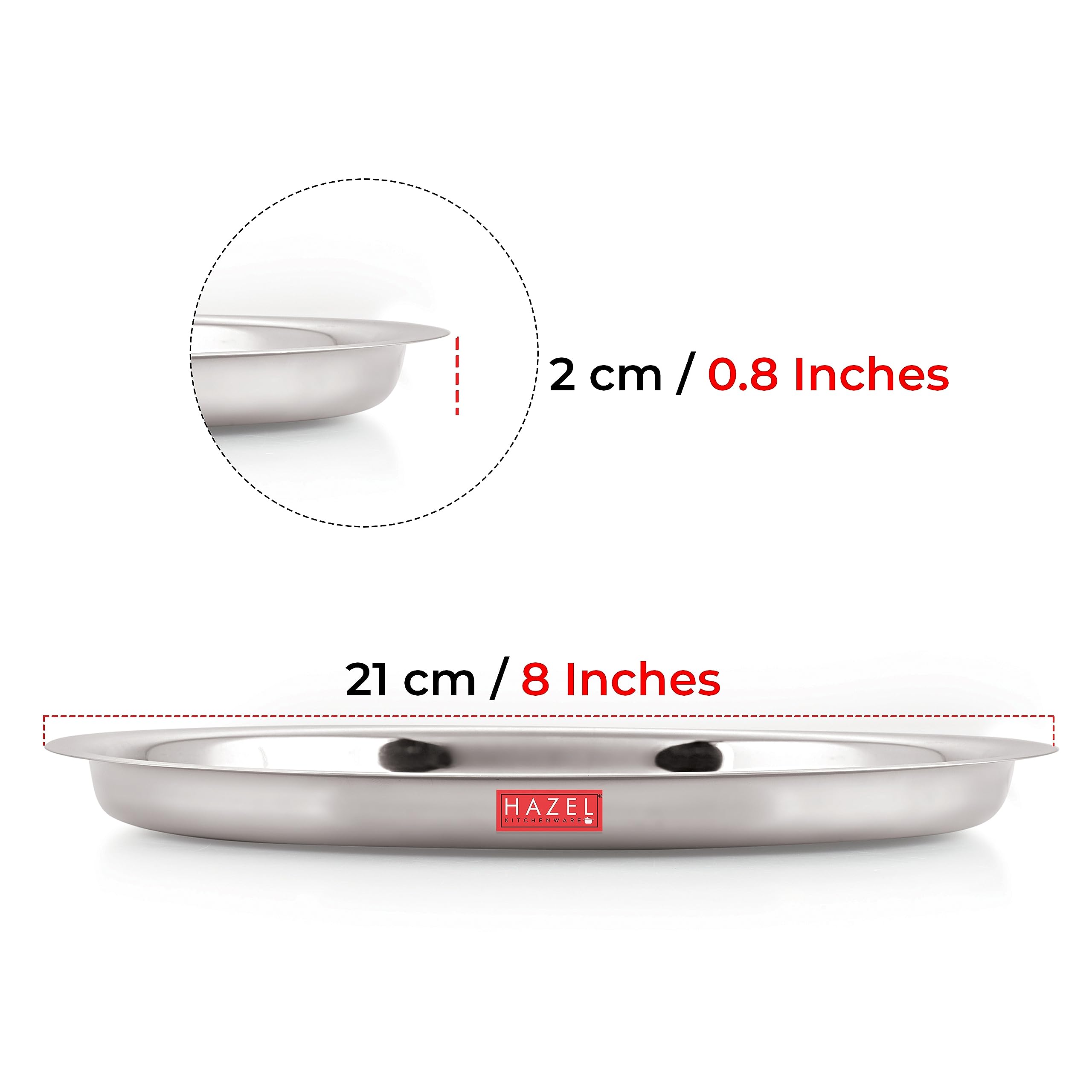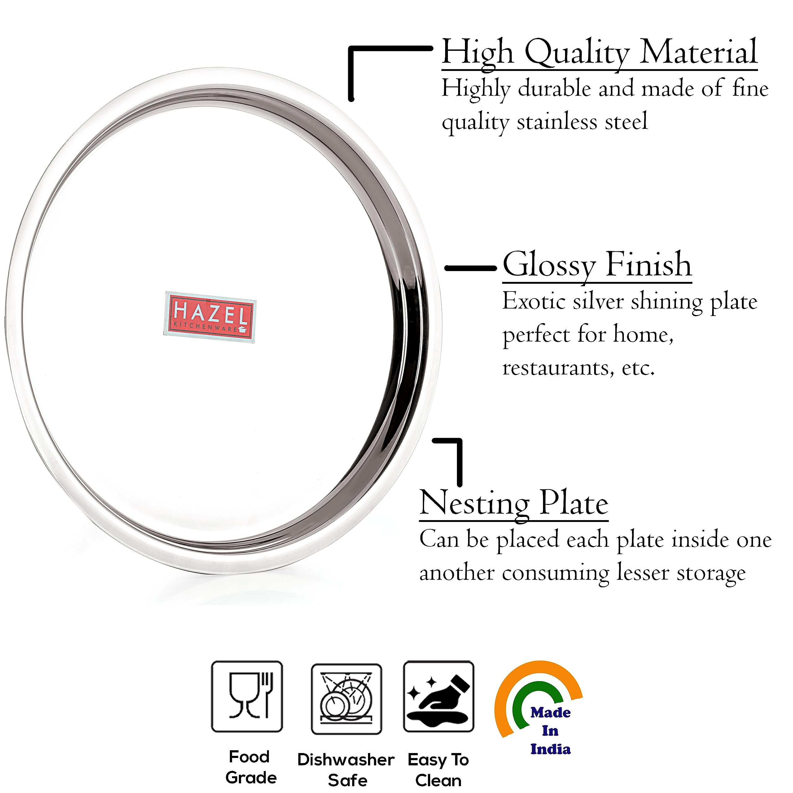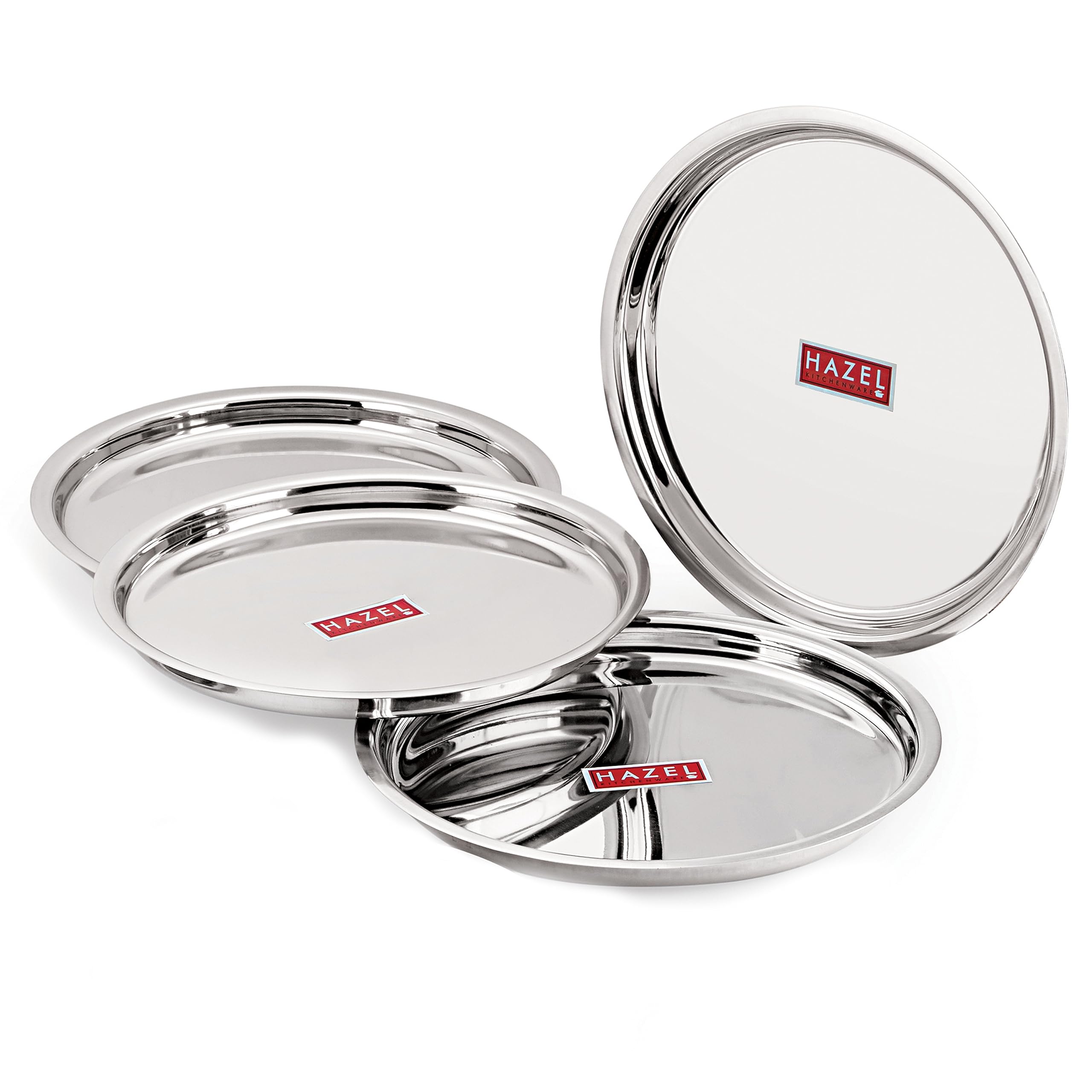 HomeKitchenServeware setsPlatesHAZEL Stainless Steel Plates Set | Premium Mirror Finish Thali Set Stainless Steel | Heavy Gauge Steel Plates Set for Dinner & Lunch Set of 4, 21 cm