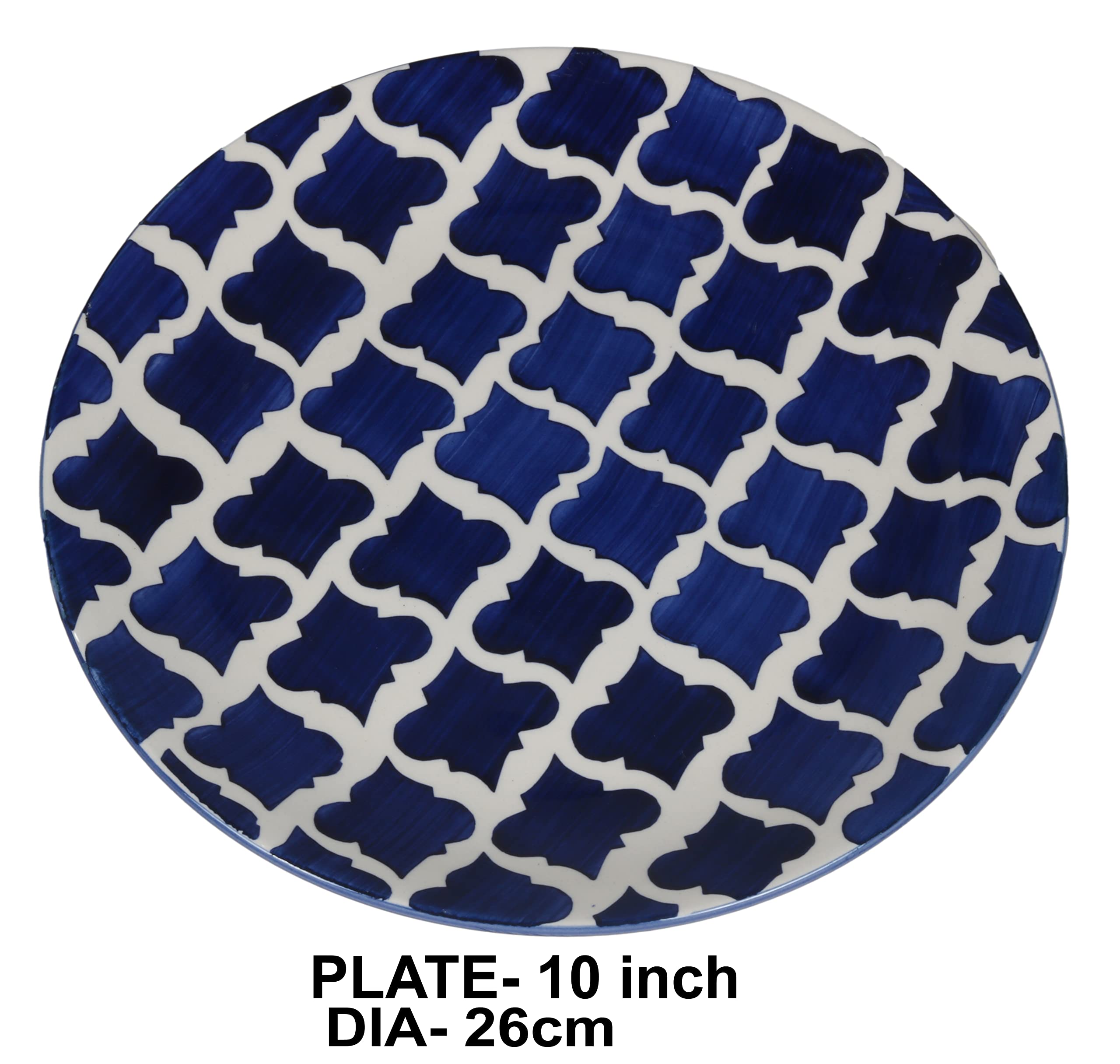 Make all your meals look as great as it tastes with these pretty hand-painted Dinner Plates. Whether enjoying an intimate dinner with your family or hosting guests at your home these beautiful ceramic plates adorning classic Printed pattern never fails to impress! A must have addition to your tableware Collection. The plates are ideal for serving salads appetizers snacks chapatis breads fruits and more. The Ceramic Plates Looks Beautiful in the Dine In Area and let you feel luxurious and worth dining.
