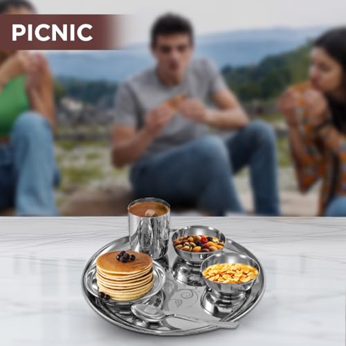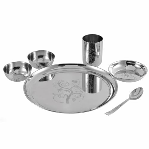1 Spoon 2 Katoris / Vati 1 Rajbhog Dinner Plate 31 cm 1 Glass 1 Halwa Plate