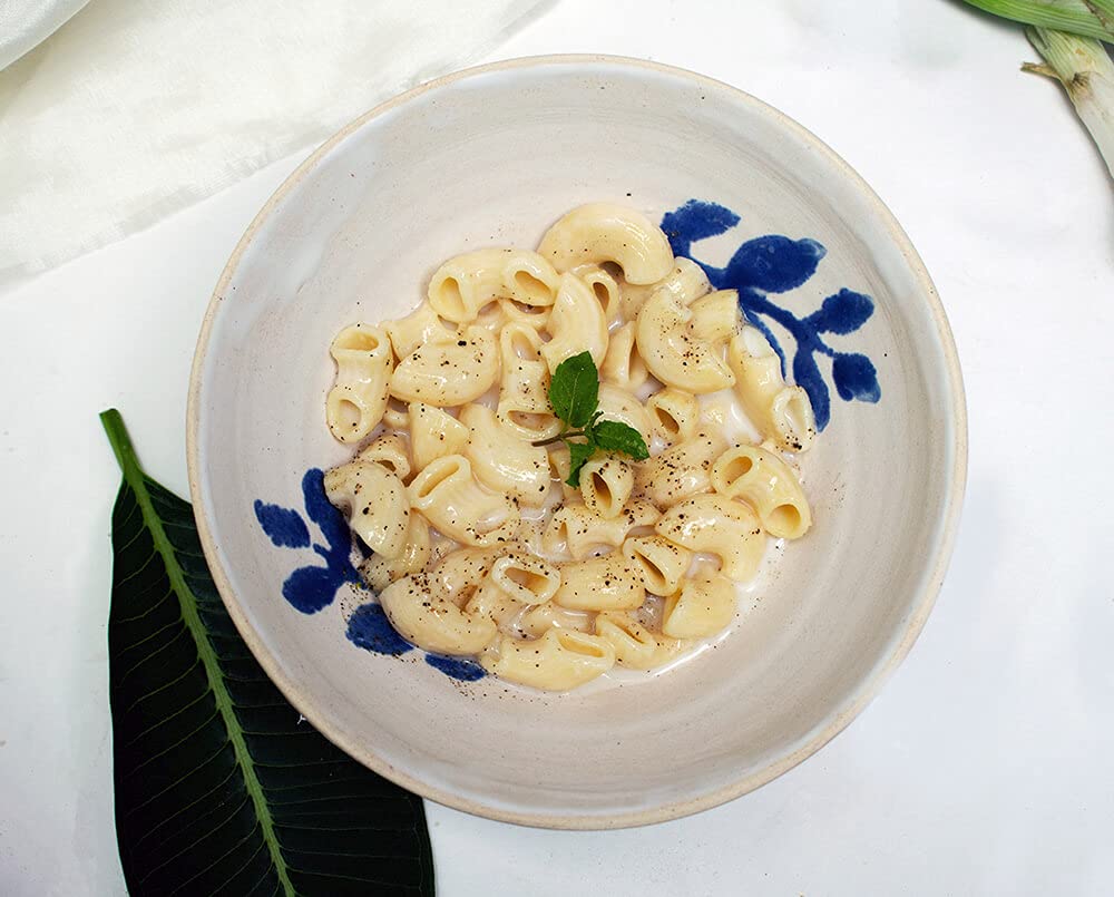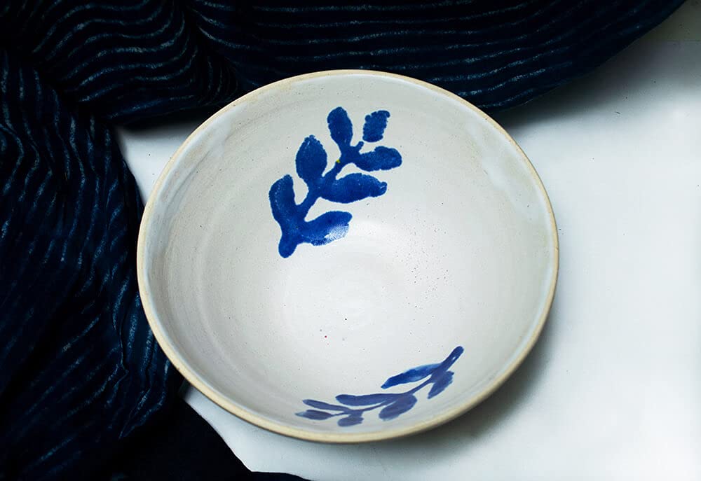 Wheel thrown glazed ceramic ware high fired at 1220C Material: Stoneware Handmade Ceramic Dimension: Height 9 cm Rim Diameter 17 cm Capacity 450ml Perfect for having salad pasta and snacks All products are individually handmade. The shapes sizes and glaze appearance may vary slightly adding to their individuality. Food safe lead free microwave and dishwasher safe. However hand wash with sponge is recommended for longevity of the product Hand-made in India Packet contains only 1 item.