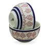 The flower and other patterns embossed on the white color bowl and painted in red and blue color have been created by Indian artisans using their hands. The material of these cereal bowl is 100% vegetarian i.e. these are bone ash-free. The package consists of 2 bowl that are microwave oven and dishwasher safe. There are no traces of lead and cadmium to be found in the products thus ensuring a healthy way of dining. Product Dimensions: 13.5x6x7.5cm Packaging Contents: 2 Pieces Weight per set: 999gm Microwave oven OTG and Dishwasher Safe Perfect for serving rice pasta ramen noodles curry soup breakfast cereal or oatmeal