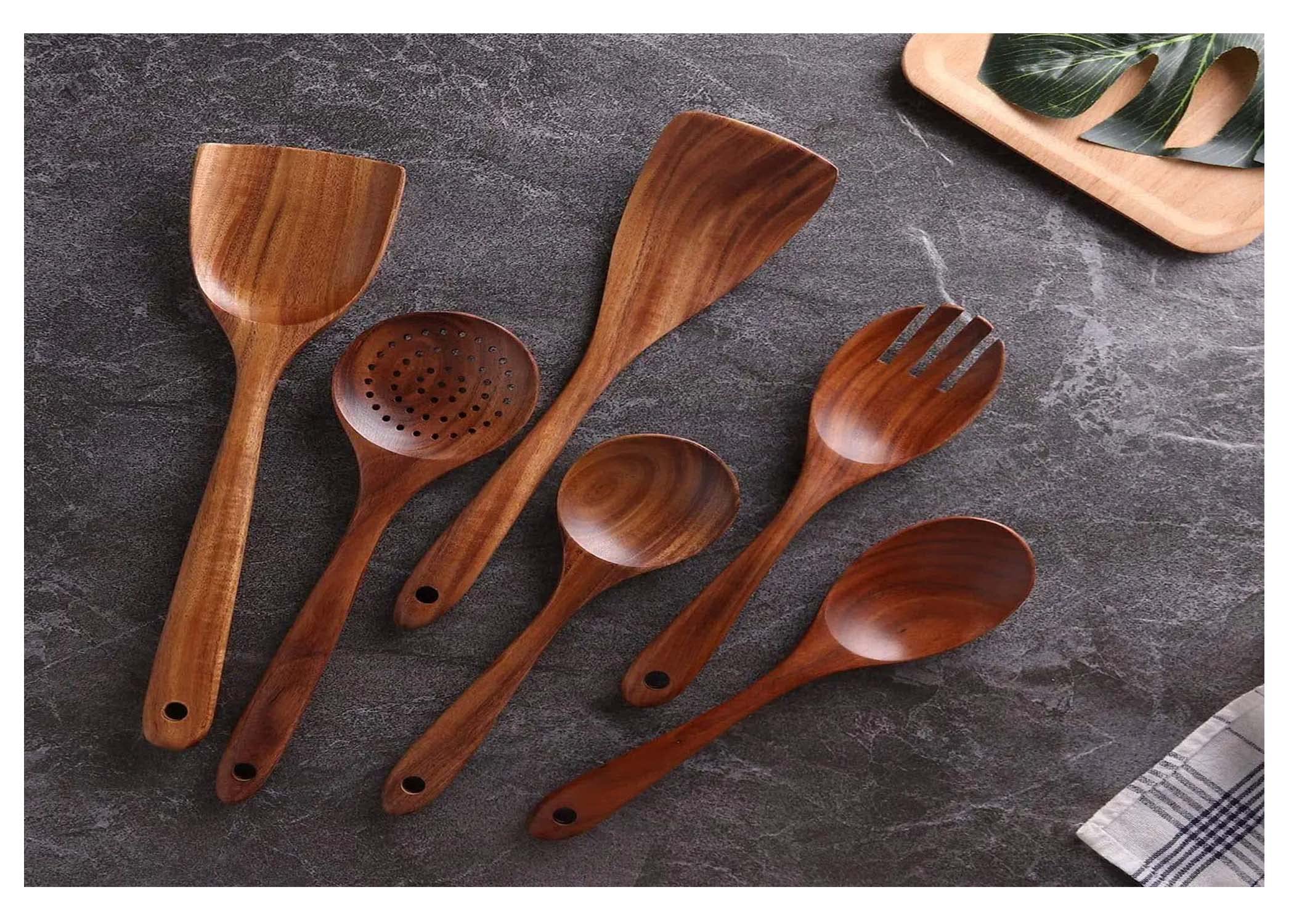BIJNOR - METAL INLAY IN WOOD Wooden Compact Flip/Spatula/Ladle for Cooking Dosa/Roti/Chapati Wood Spoon Tools No Harmful Polish Naturally Non-Stick Wooden Spatula Wooden Spatula for Non Stick pan Spatula Set of 6