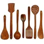 Natural Sheesham Wood Spoon Set of 7 | Non Stick Safe Cocking 2 Frying 1 Serving 1 Spatula 1 Chapati Spoon 1 Desert 1 Rice | Size- Large