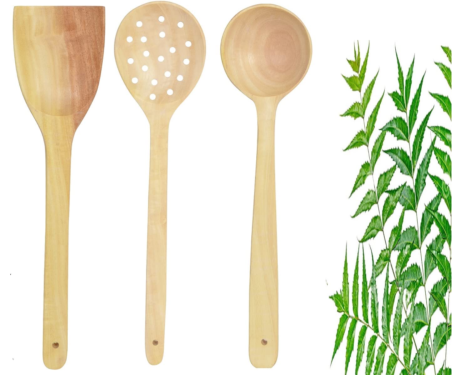 This Wooden Spatulas Made of Deshi Neem wood. We know that neem wood is a precious wood. Set of 3 Kitchen Spatulas are Safe for non-stick cookware. Get this wooden spoon cooking and serving. Dimensions: Length ranging from 28 to 38cm Spatulas are made from a single block of neem wood so it doesn't have any joints. No harmful shining polish is used which is harmful for health and prohibit the neem wood antibacterial function. The non-scratch wooden spatula is not going to leave any scratch on pan. Use mild soap and warn water for cleaning.