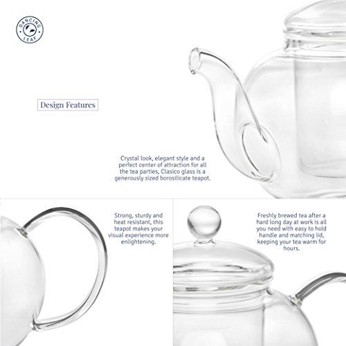 Clasico Glass Tea Pot with Removable Glass Infuser & Matching Lid | Heat Resistant Borosilicate Glas