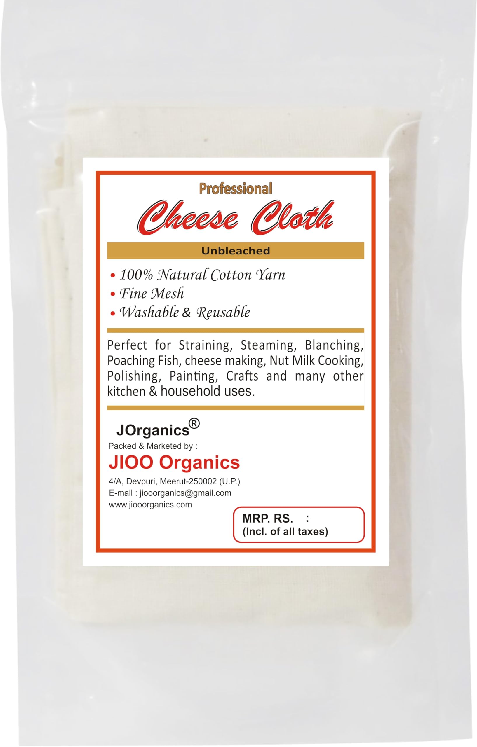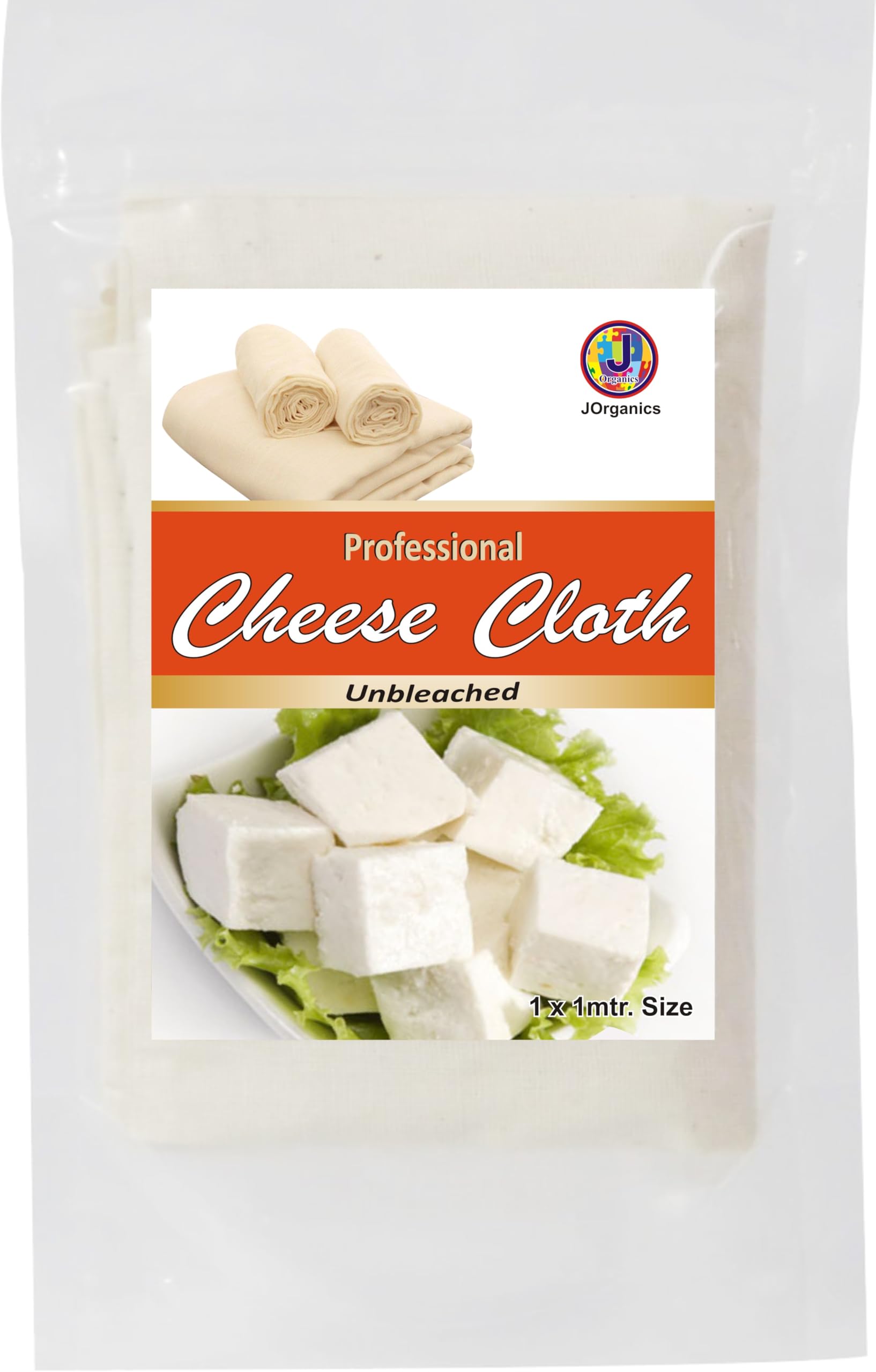 JOrganics Professional Cheese Making ClothThis unbleached muslin cloth is perfect for making cheese at home. It is made from 100% organic cotton which is strong and durable. The cloth is also breathable which allows the cheese to drain properly.This cheesecloth is ideal for making paneer dahi and other traditional Indian cheeses. It can also be used for making other types of cheese such as ricotta mozzarella and cheddar.The cloth is machine-washable and reusable so you can use it over and over again. It is also a great value for the price.Key benefits:Made from 100% organic cottonStrong and durableBreathableIdeal for making paneer dahi and other Indian cheesesCan also be used for making other types of cheeseMachine-washable and reusableGreat value for the price