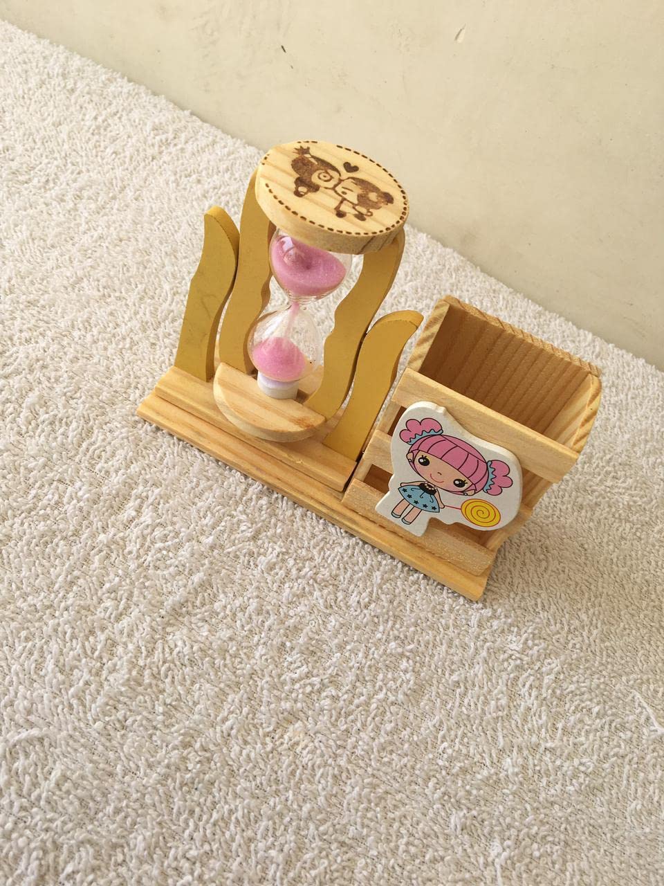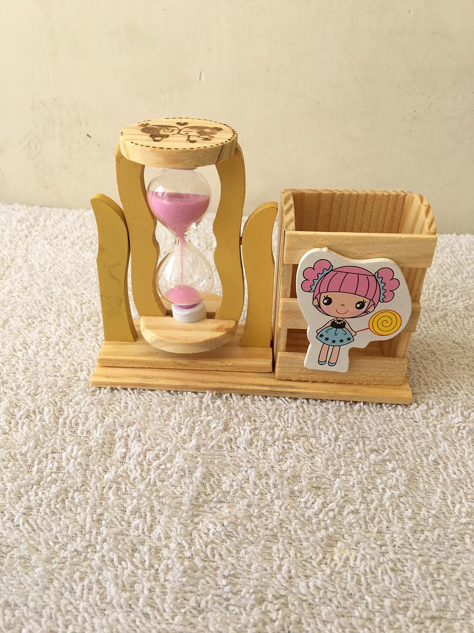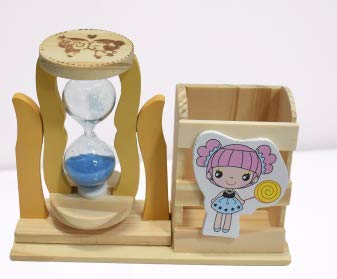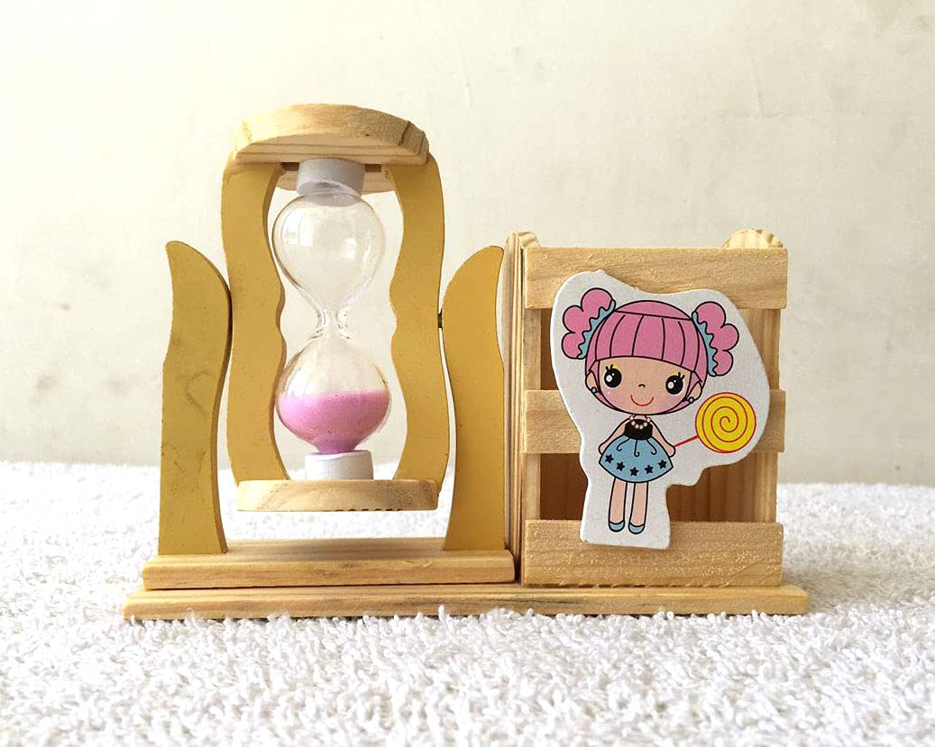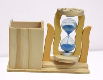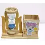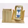 CANE & BAMBOO CRAFTS Pen Pencil Stand With 1Sand Timer | Multipurpose Wooden Desk Organizer Pen And Pencil Stand For Office Table With Sand Timer (Wooden)