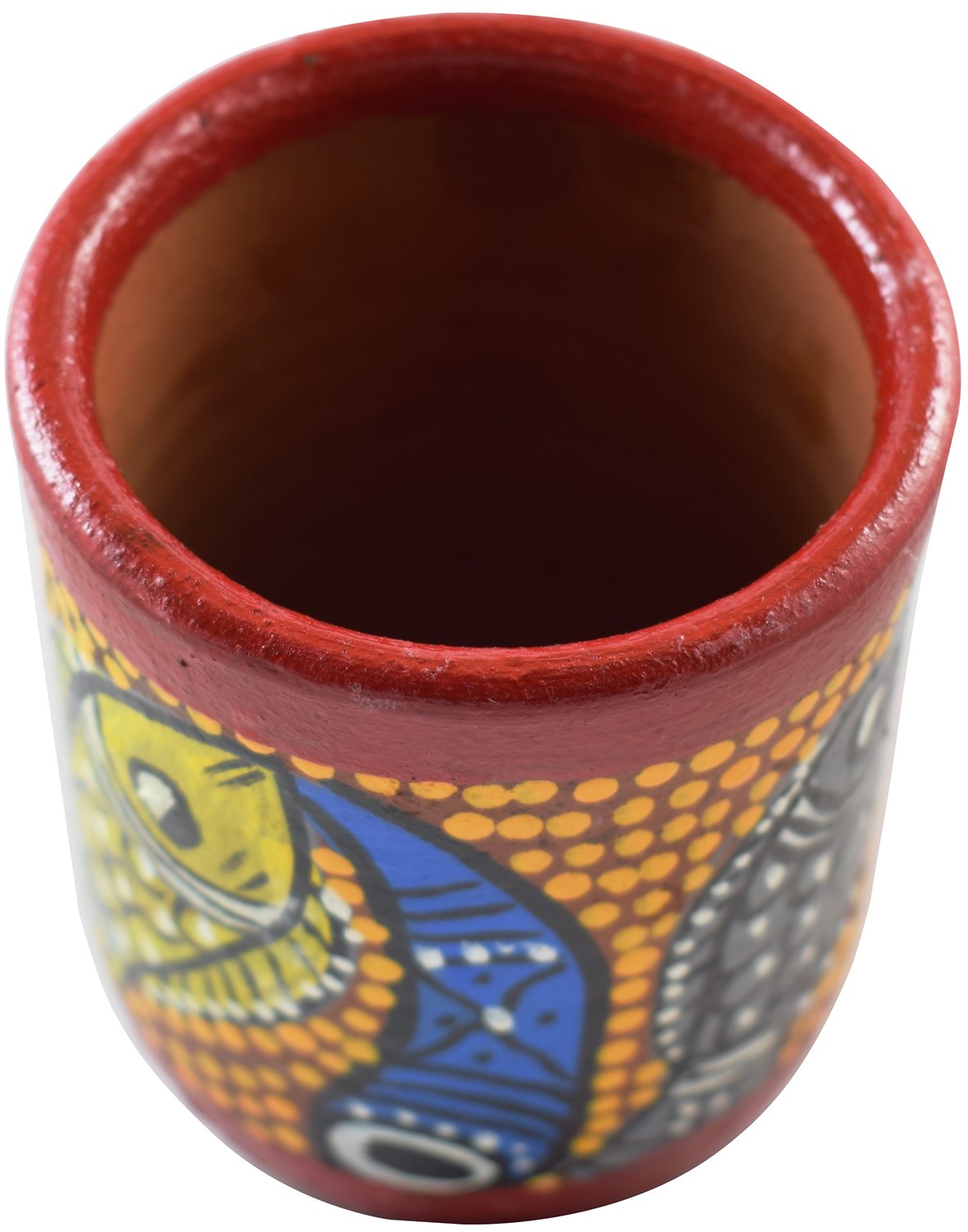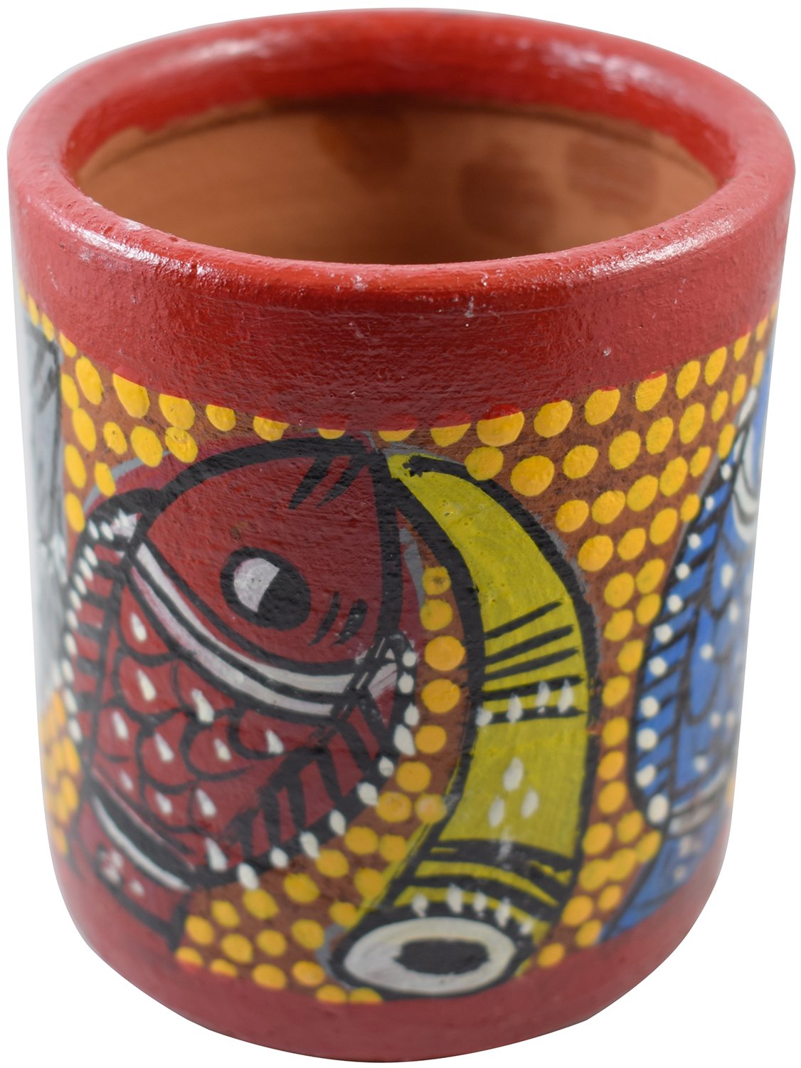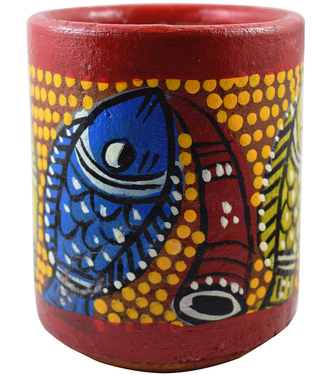Pen Stand Teracotta Hand Painted Fish Design (Dia 3.25 x H 4 inches)
