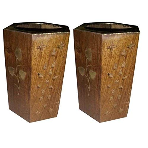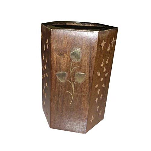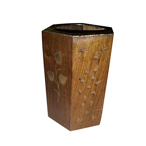 wooden Pen holder in fine quality wood and beautiful dotted and leaf carving.You can easily place Pen Pencil and other small items inside the holder.The holder is made up of fine wood and there is beautiful brass leaf work done over at the holder. It is one of the best gift for your near ones.