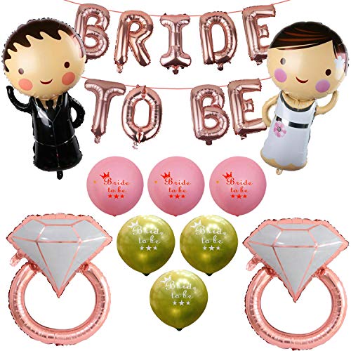 11Pcs Rose Gold Bachelorette Party Decorations Set| Foil Ring Bride to be Banner Couple Foil Balloon