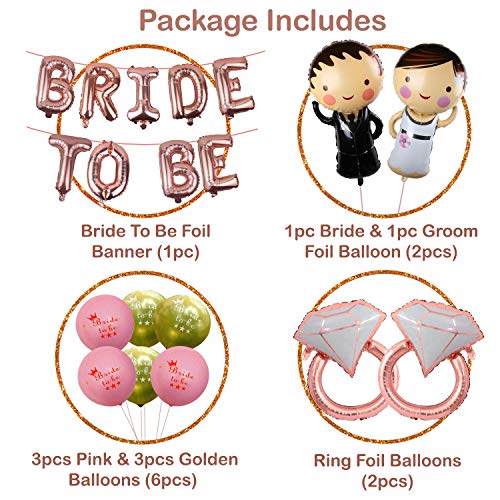 11Pcs Rose Gold Bachelorette Party Decorations Set| Foil Ring Bride to be Banner Couple Foil Balloons and Printed Latex Balloons Combo for Bridal Shower Decoration
