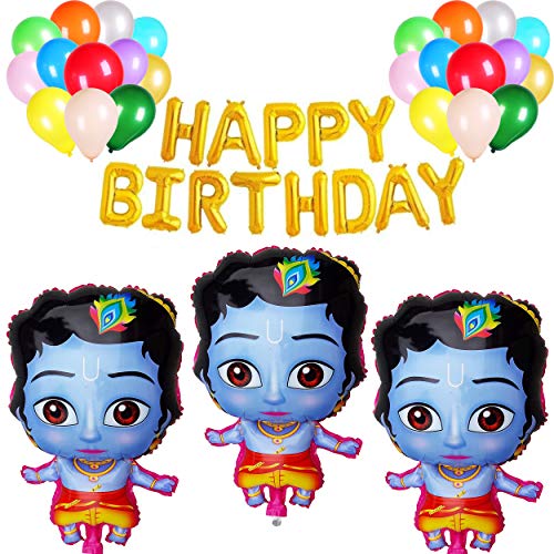 3 Pcs " 18 " Multicolour Little Krishana Bal Gopal Foil Balloons with Happy Brthday Foil and 50 Mult