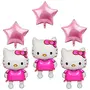 3 Pcs Cartoon Character Hello Kitty Foil Balloons with 3 Pcs Pink Star Foil Balloons for Girls KDs Brthday Theme Parties