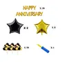 Package included: 50 Pic Metallic Balloons (25 Pic Golden + 25 Pic Black) + 4 ps Star Foil balloons (2 Golden + 2 Black) + 1pc (Happy Anniversary foil balloons) + 1 Free Air Pump