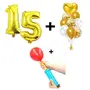 Gold 15Th Brthday Decorations and Balloon Pump Combo "Gold Number Foil Balloon (16 Inches) and Confetti Latex Balloons Bouquet Real Gold Party Supplies Anniversary Decor