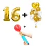 Gold 16Th Brthday Decorations and Balloon Pump Combo Gold Number Foil Balloon(16 Inches) and Confetti Latex Balloons Bouquet Real Gold Party Supplies Anniversary Decor