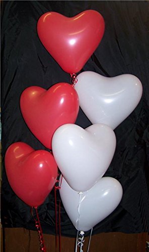 Evisha Heart RED & White Balloons| Love Theme Party Balloons | Valentines Decoration Balloons Heart Shape Balloons (Pack of 50)