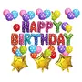 Multicolor Happy Brthday Foil Balloons + 30 Multicolor Polka Dot Balloons + 3 Golden Stars (Multicol