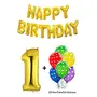 Number 1 Gold Foil Balloon and 25 Nos Polka Dotted Multi Coloured Latex Balloon and Happy Brthday Gold Foil Balloon Combo