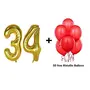 Number 34 Gold Foil Balloon and 50 Nos Red Color Latex Balloon Combo