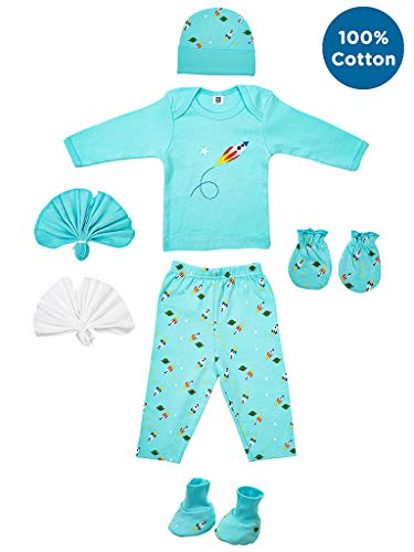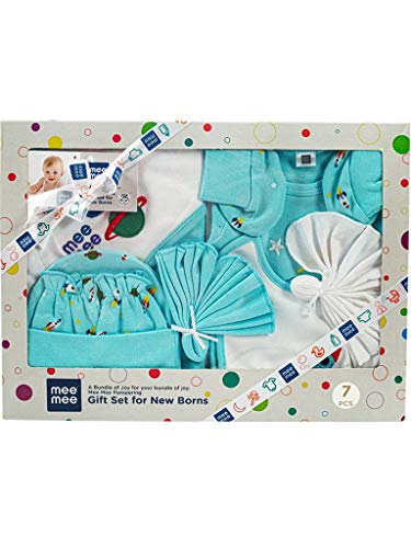 HomeBabyBath & SkinGift SetsMee Mee New Born Baby Gift Set | Soft Cotton Clothing Essentials for Infants/Baby Girls, Boys | Baby Shower Clothing Hamper (7 Pieces, Blue)| Ideal Gift for New Born Baby