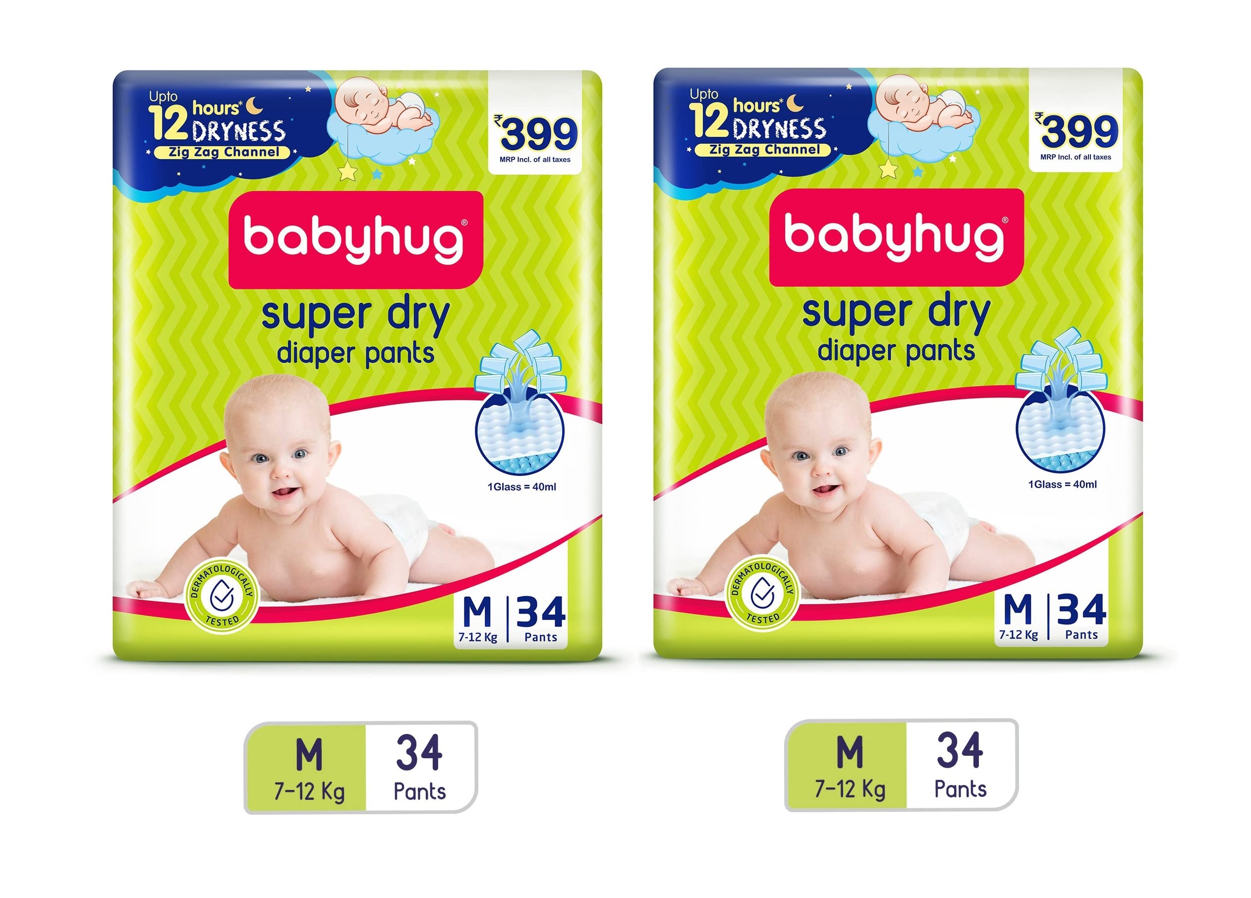 Babyhug Super Dry Pant Style Diaper Medium - 34 Pieces Pack of 2