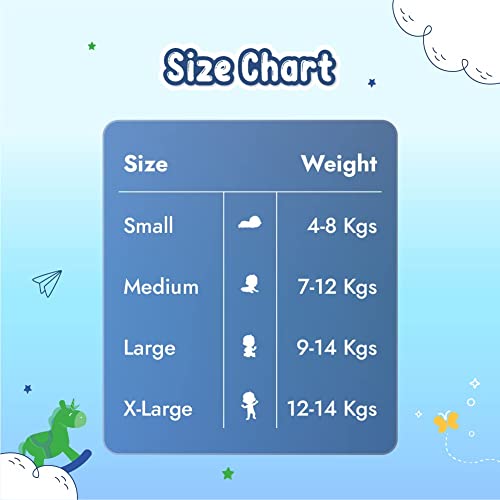 • HIGH ABSORBENCY:- The large absorbing area of the pad ensures maximum dryness for the baby. It can hold up to 7 glasses of liquid where 1 glass is equal to 50 ml.