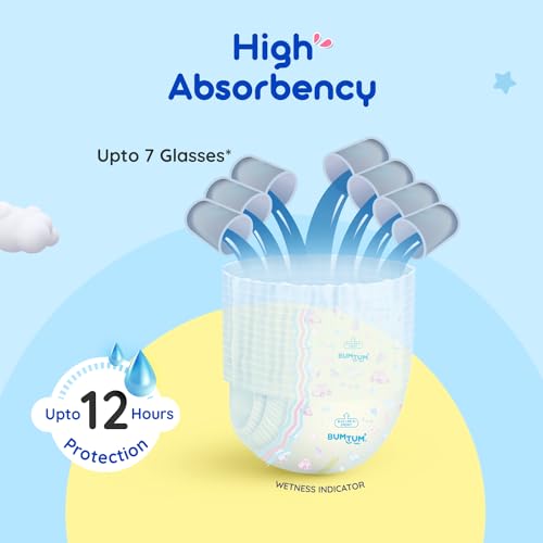 • LEAKPROOF:- There is nothing to worry about leakage with double and bubble layer cuff used in Bumtum diaper that snugly fits your baby without any discomfort.