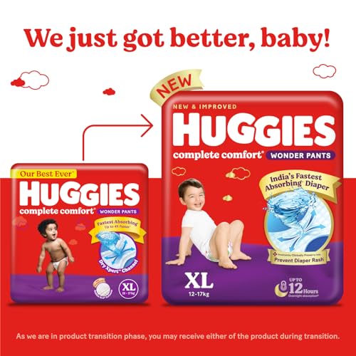 Huggies Complete ComfortTM Wonder Pants provides 5 benefits in 1 diaper. With India's 1st Pants with Bubble Bed technology Huggies provides a soft inner bubble layer that wraps your baby in softness. Made from air friendly material our diaper pants help your baby's skin to breathe. Up to 12 Hours of Overnight Absorption allows you and your baby to have a comfortable sleep. Triple leak guard provides extra padding to fight leakage and Comfy fit waistband ensures a snug fit for your baby. Our Pant style diapers are available in all sizes from Newborn/XS S M L XL and XXL sizes.