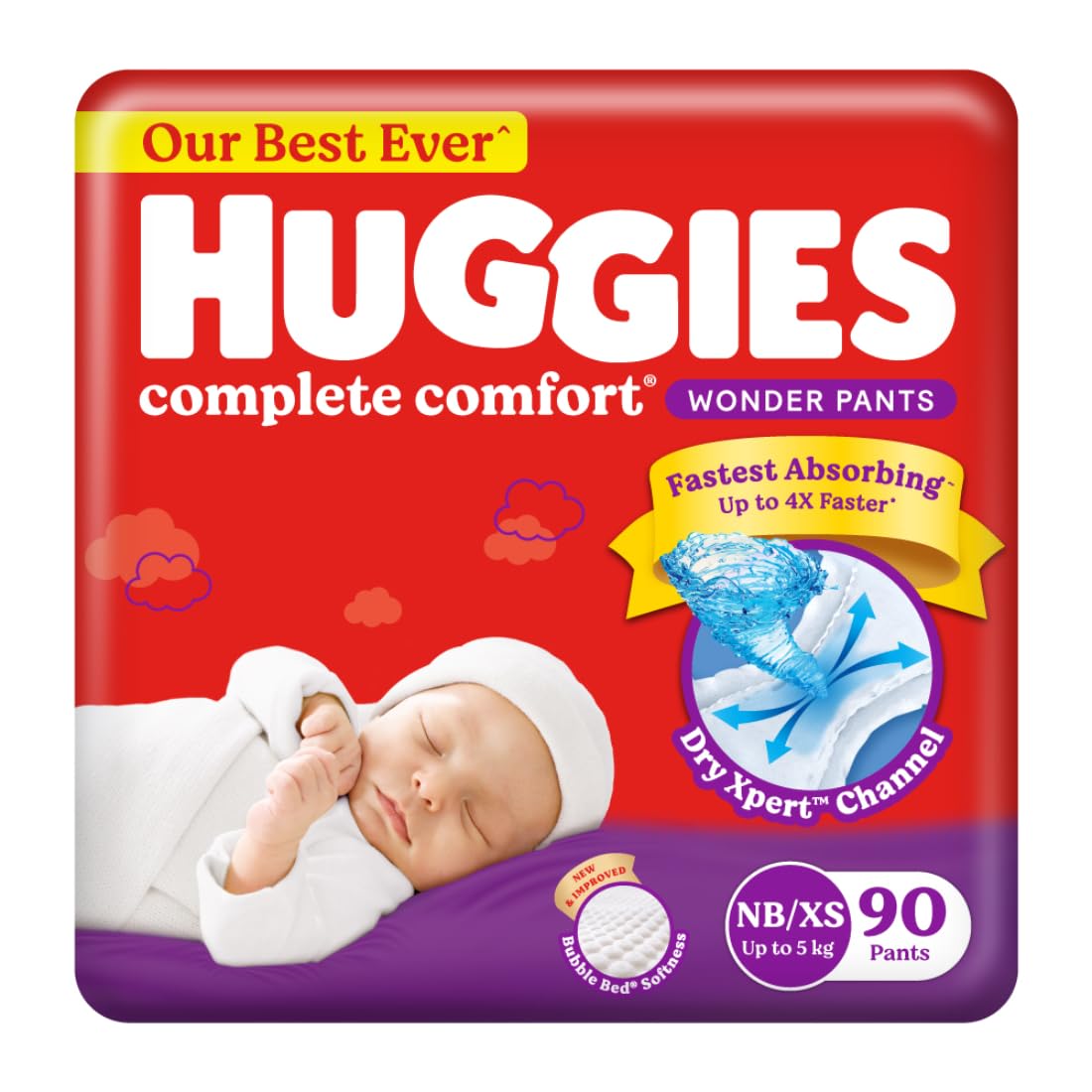• New & Improved Huggies Complete Comfort Wonder Pants - India's Fastest Absorbing diaper with Patented Dry Xpert Channel; Extra Small size / New Born size baby diapers