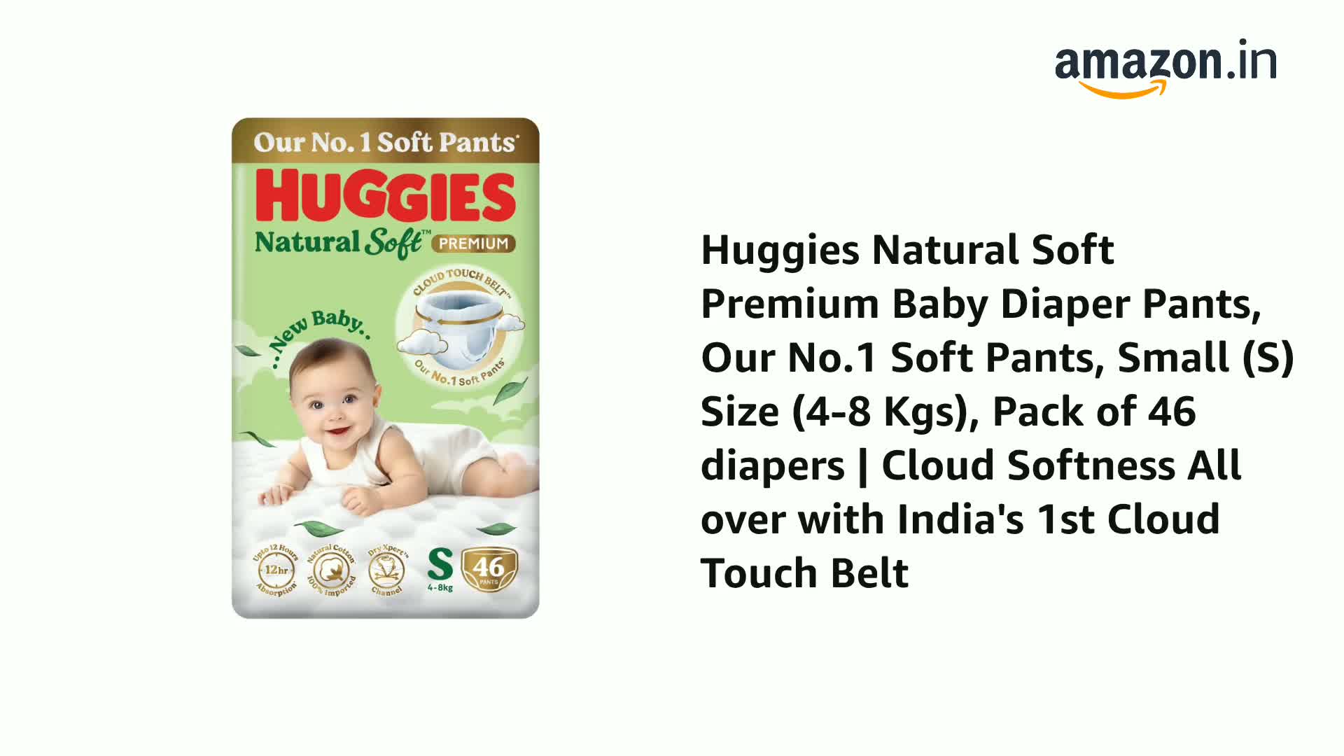 Introducing the new Huggies Natural Soft⢠Our New Premium Soft Pants with India's 1st Cloud Touch Belt TechnologyTM. With Cloud like softness all over it wraps your little one's delicate skin in our softest embrace. Our patented Cloud Touch BeltTM around the waist is made with ultra soft materials that reduces elastic pressure on baby's skin and helps prevent red marks on the skin. The cloud soft bubble bed liner and outer cover cushions baby's skin gently ensuring the softest fit for the baby. Inspired by nature our premium diaper contains carefully selected & 100% imported natural cotton liner for the most gentle care. It comes with India's fastest absorbing Dry Xpert ChannelsTM patented technology which absorbs 4 times faster than regular diapers and absorbs for up to 12 hours ensuring uninteruppted sleep for both you and the baby. The double leak guards on the sides help prevent leakage giving the baby the most comfortable in-wear experience. Our 100% breathable cover enables the skin to breathe and thus helps prevent diaper rashes for ultimate comfort on baby's skin. It also comes with a wetness indictor that turns blue from yellow helping moms with suggestive diaper changing time.  Huggies Natural Soft is available across XS-XXL sizes in cutest prints for your lil'one to be the showstopper that they are. Try the premium range from Huggies with Huggies Natural Soft today. Our softest for your softest.  Usage Instructions: Pull the diaper pants up from baby's legs. After fully used tear diaper from the sides and remove.