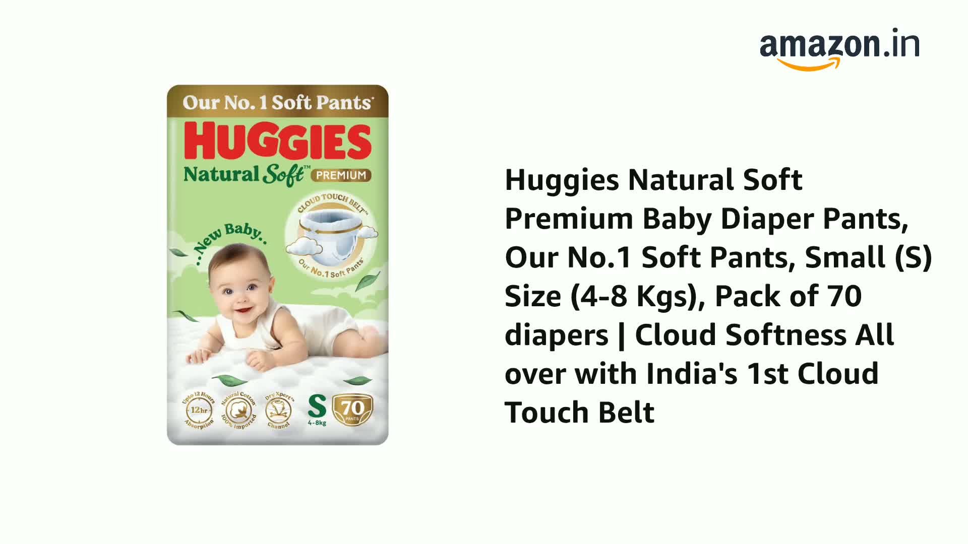 • Our No.1 soft Pants: New & Premium Huggies Natural Soft comes with India's 1st Cloud Touch BeltTM with cloud softness all over to help prevent red marks; Small (S) Size (4-8 Kgs) Pack of 70 diapers