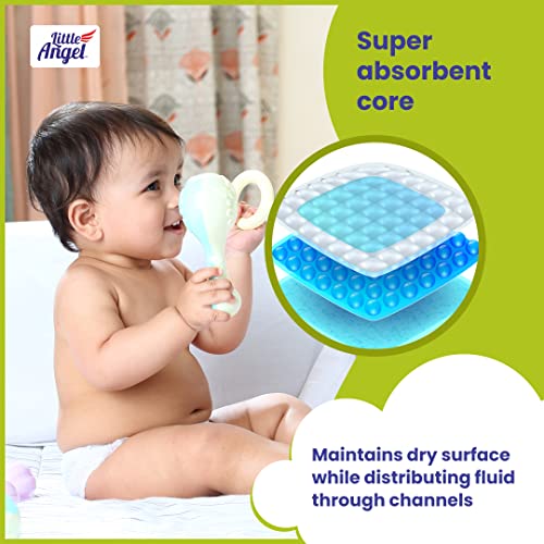 Up to 12 Hours Protection: Little Angel Extra Dry Diaper Pants offer absorbent protection and softness for your baby's skin and breathability to keep it clean and healthy. With a secure fit and long-lasting protection these pants help eliminate leaks for