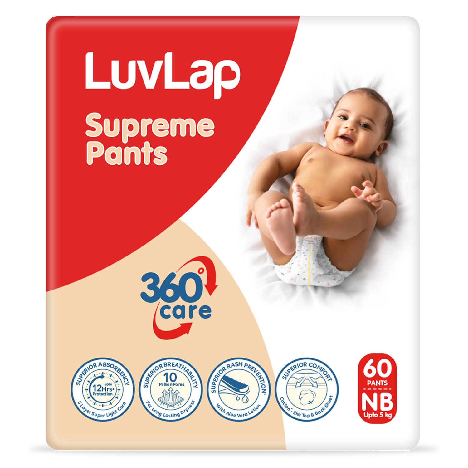 The Luvlap Supreme diaper is designed to provide your little one with the superior comfort and protection. With its soft breathable material and zero leakage mechanism your baby will stay dry and comfortable all day long. So you can have peace of mind knowing that your baby is protected. Aloe Vera lotion ensures zero irritation for the baby. Give your baby the best with the Luvlap Supreme Diaper!
