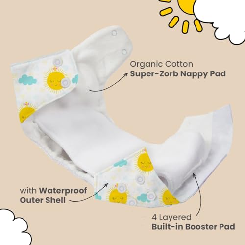 Mother Sparsh Plant Powered Cloth Diaper with FREE Plant Powered Water Baby Wipes (60Pcs) | Reusable Cloth Diaper for Babies with Built in Booster Pad | Cloth Like baby Wipes (Comfy)