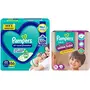 Pampers Active Baby Taped Diapers Extra Large size diapers (XL) 32 count taped style custom fit5 Star Skin Protection: The Best tape style diapers from Pampers with an outer layer of cotton-like softness this baby diaper provides intense care to your baby's sensitive skin and protects it effectively from friction rash and redness. These soft and comfort fitting diapers with stretchable sides are best for your baby's rest and playtime. The diaper's fastening tape sticks multiple times thus ensuring it stays in place even after you fasten it after checking your baby's diaper. Protection and nourishment of your baby's skin are taken care of with extracts of moisturizing Aloe Vera lotion characteristic of these best baby diapers.. These diapers are ultra-thin thanks to the absorbent gel material (AGM) commonly known as Magic Gel. This magic gel core of Pampers diapers is highly effective in absorbing frequent wetness. Naturally your baby's skin remains dry for upto 12 hours now no more frequent diaper changing or blow leaks for your little angel. Keep your baby's skin delicate with 5 star skin protection. Pampers Active Baby comes with 5 features in just one diaper. 12 hours dryness baby lotion cottony softness breathable cover and comfortable fit. 12 Hours Dryness Our driest diaper keeps baby's skin touchably dry for up to 12 hours. Baby Lotion This unique diaper is infused with baby lotion to help prevent diaper rash. Cottony Softness Keep baby's skin free from irritation with cotton-like softness. Breathable Cover Air circulates so baby's skin can breathe easily and stay wonderfully fresh. Comfortable Fit A flexible side stretch design keeps it snug and comfy whether baby is at rest or play. Diaper Sizer Five Features in One Diaper View Larger Comparison Chart View Larger Using Pampers Pants When to Change Right before or right after every feeding After every bowel movement Before bedtime When your baby wakes up When you go out with your baby How to Change Put the diaper under the baby's body. Pull the elastic side properly. Apply both sides in symmetrical position on landing zone. Adjust the cuff around legs on both sides.Pampers All round Protection Pants New Born Extra Small size baby diapers (NBXS) 86 Count Lotion with Aloe VeraNEW & IMPROVED Pampers all-round protection pants have ANTI-RASH BLANKET* containing Lotion with Aloe Vera to keep your baby’s skin protected from redness irritation and rashes. quality diapers with 100% WETNESS LOCK keeps the pee locked inside & baby's bum stays dry for ALL NIGHT. Air channels & stretchy belt provides your baby breathable airy fit - comfortable even in summers. Pampers unique Magic gel technology provides up to 12 hours of dryness – and has 2X faster absorption. The new and improved product design enables a comfortable fit closer to the baby’s body and an EXTRA SOFT flexible waist band that adapts to baby’s movements for best comfort. Available in all sizes – Small diapers medium diaper pants large size diaper pants XL diapers XXL diapers XXXL diaper pants. A top layer with cotton-like soft material ensure a comfortable night’s sleep. Our pants with fun exterior graphics fun designs of characters and a delightful fresh Aloe fragrance ensures you enjoy every change with your baby. (*Blanket refers to soft topsheet with lotion. Helps prevent rash due to wetness after 1 day of usage based on clinical studies in USA 2000-2019).