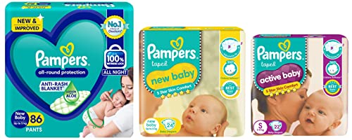 HomeBabyDiaperingBaby DiapersPampers All round Protection Pants, New Born & Active Baby Diapers, New Born, Extra Small, (NB, XS) size, 24 Count, Taped style diaper & Active Baby Taped Diapers, Small size Diapers