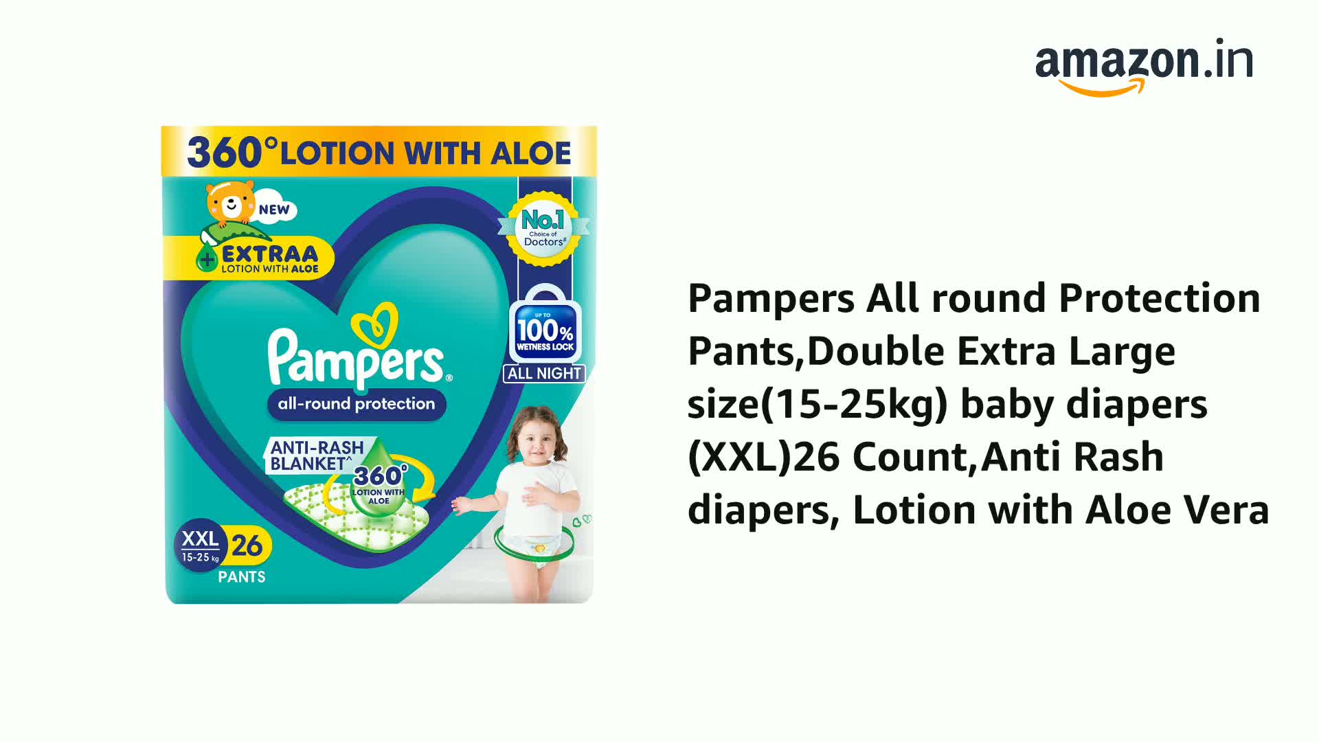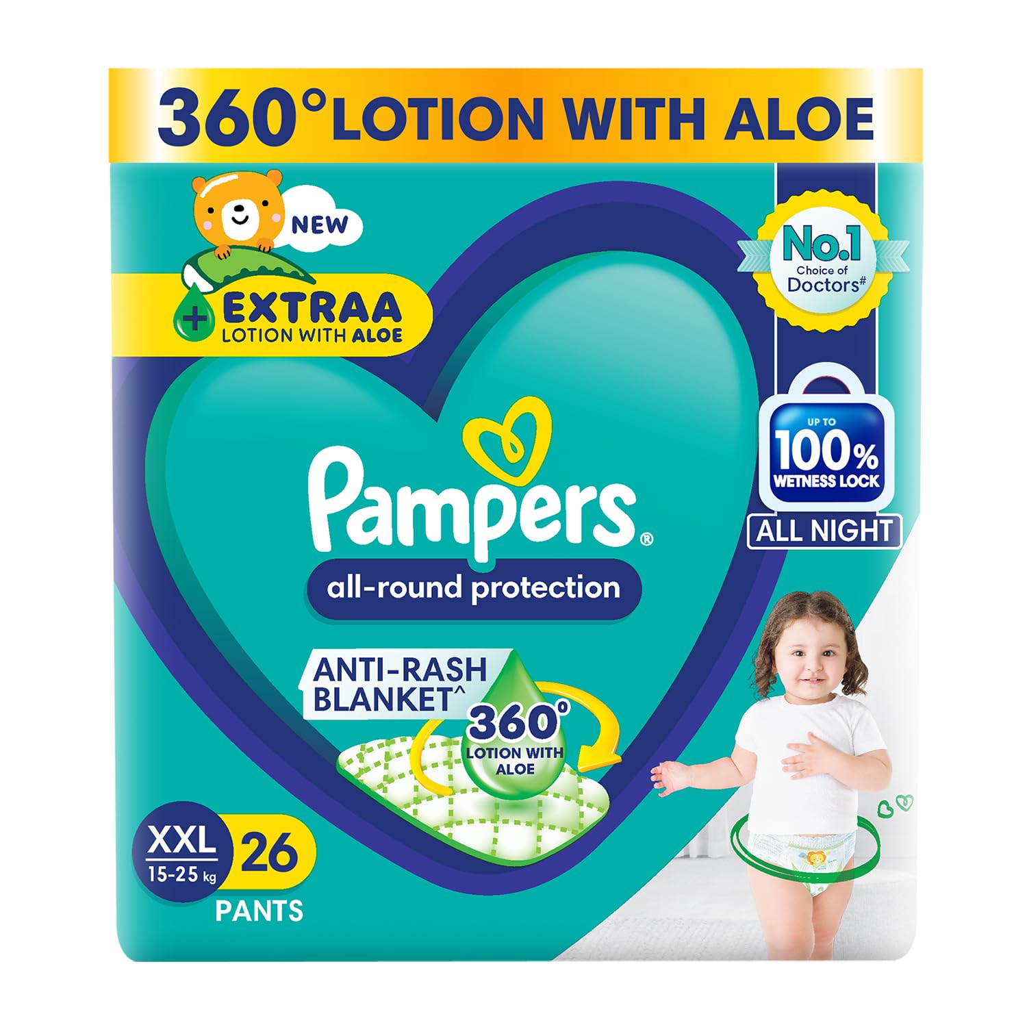 Pampers All round Protection Pants,Double Extra Large size(15-25kg) baby diapers (XXL)26 Count,Anti Rash diapers, Lotion with Aloe Vera