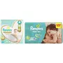 Pampers Taped Baby Diapers Large (LG) 60 countNEW & IMPROVED Pampers all-round protection pants have ANTI-RASH BLANKET* containing Lotion with Aloe Vera to keep your baby’s skin protected from redness irritation and rashes. quality diapers with 100% WETNESS LOCK keeps the pee locked inside & baby's bum stays dry for ALL NIGHT. Air channels & stretchy belt provides your baby breathable airy fit - comfortable even in summers. Pampers unique Magic gel technology provides up to 12 hours of dryness – and has 2X faster absorption. The new and improved product design enables a comfortable fit closer to the baby’s body and an EXTRA SOFT flexible waist band that adapts to baby’s movements for best comfort. Available in all sizes – Small diapers medium diaper pants large size diaper pants XL diapers XXL diapers XXXL diaper pants. A top layer with cotton-like soft material ensure a comfortable night’s sleep. Our pants with fun exterior graphics fun designs of characters and a delightful fresh Aloe fragrance ensures you enjoy every change with your baby. (*Blanket refers to soft topsheet with lotion. Helps prevent rash due to wetness after 1 day of usage based on clinical studies in USA 2000-2019).Pampers Premium Care Pants Medium size baby Diapers (M) 54 Count Softest ever Pampers PantsNew Pampers Premium Care Pants with 360 degree cottony softness gives your baby the ultimate comfort all day all night long. Pampers Premium Care Pants contain soothing lotion with Aloe Vera to protect your baby’s skin from rashes while its 10 million micropores allow your baby’s skin to breathe. Its 12-hour leak lock facility keeps your baby dry and away from wetness. Experience 5-Star comfort with unique added features like Wetness Indicator which turns Yellow to Blue indicating when you may change the diaper and a Disposal Tape to help you with easy disposal. Pampers Premium Pants are available in New-born (NB) S M L XL and XXL sizes.
