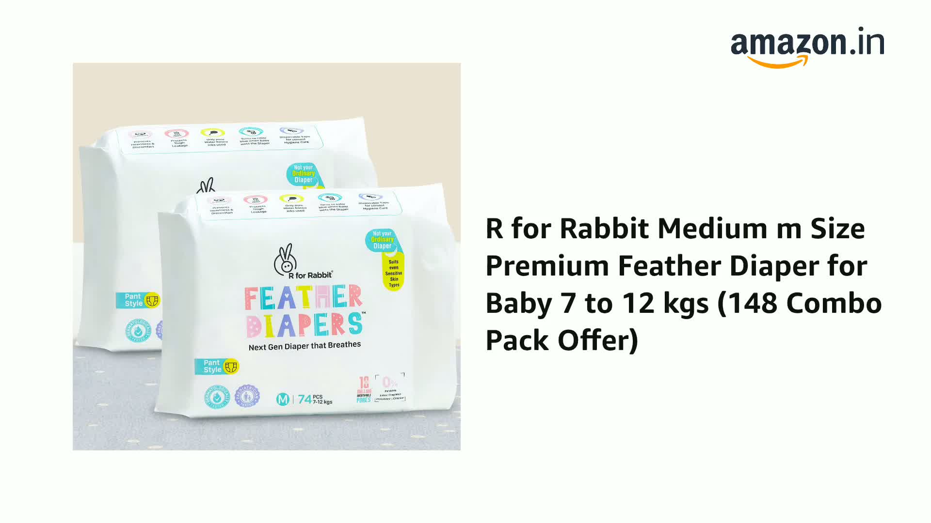 R for Rabbit Medium m Size Premium Feather Diaper for Baby 7 to 12 kgs (148 Combo Pack Offer)