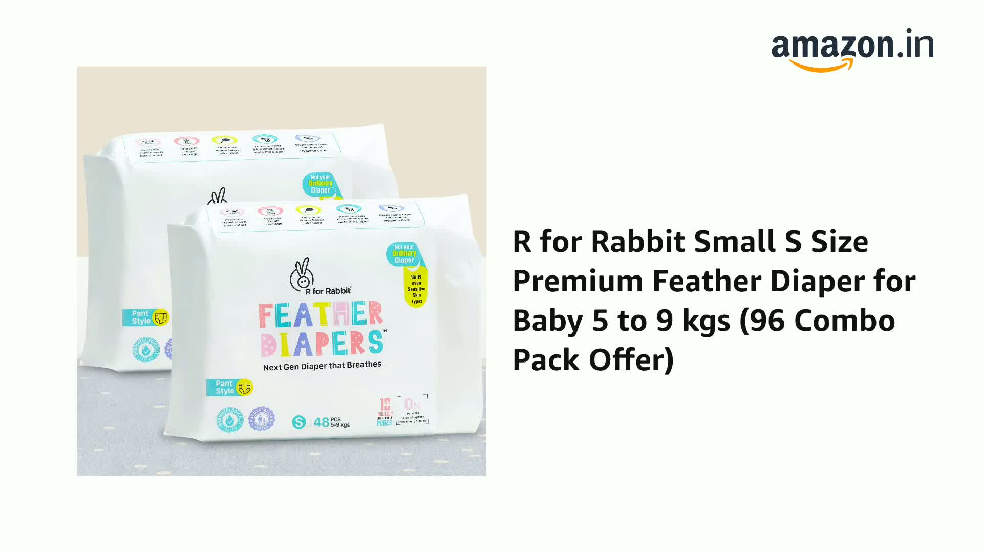 • Breathable Diaper: R for Rabbit Feather Small S Size Diapers for S size having 10 Million* Breathable pores which allows the air to easily pass through making the diapers highly breathable and acting as a rash guard for your baby by instantly locking mois