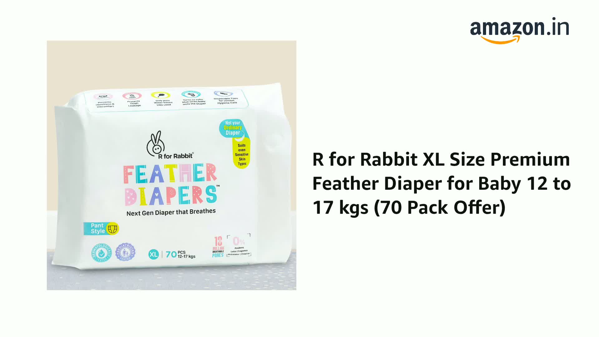 • Sizing Guide: R for Rabbit Feather Diaper with XL Size is ideal for babies from 12-17kgs