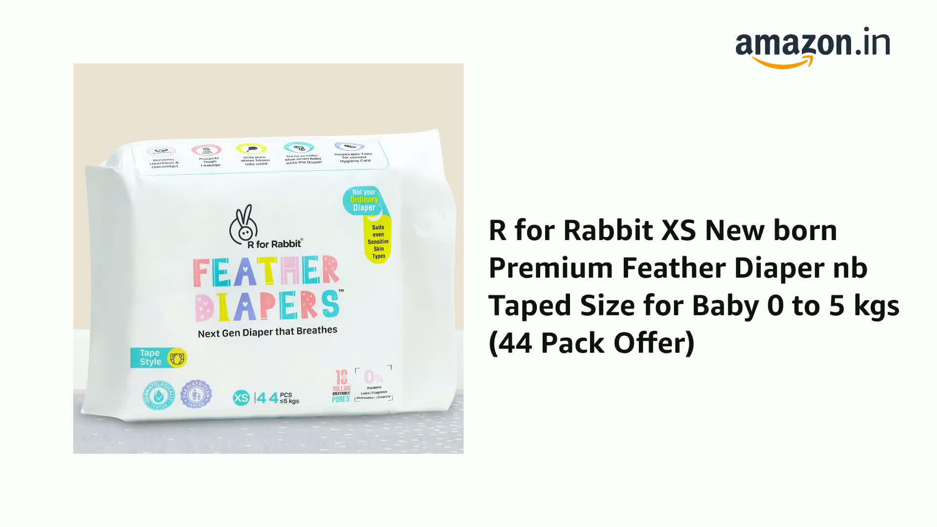 R for Rabbit XS New born Premium Feather Diaper nb Taped Size for Baby 0 to 5 kgs (44 Pack Offer)
