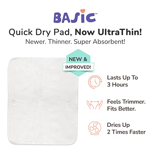 superbottoms Baby Basic Quick Dry Ultrathin Pads | New & Improved Insert | 4 Layer Cotton Padding, Lasts Up To 3Hrs | Trim Fitting | Foldable Pads For Freesize Cloth Diaper-Pack Of 3, 1 count