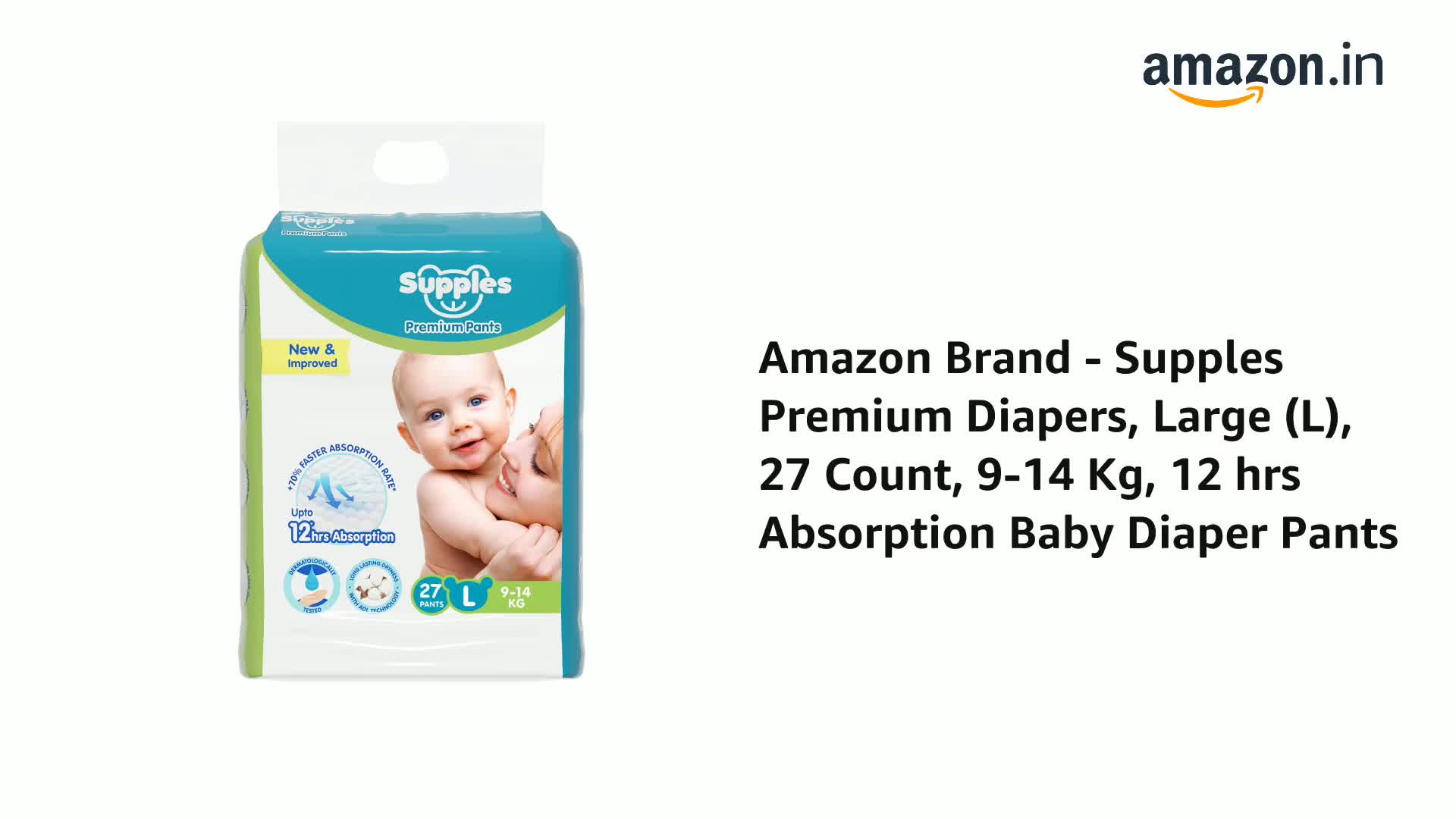 SUPPLES PREMIUM DIAPER PANTS: Choosing the diaper for your baby is an important step in ensuring your little one comfort during the day as well as overnight. We understand that nothing is more important than the comfort of your little baby. With Supples Premium diaper pants we want to keep your baby comfortable both in day as well as in night thus delivering happiness to every doorstep. Choosing the right diaper size based on baby weight is important. The diaper capacity may vary among babies depending on the volume of pee and posture. Available in sizes NB S M L XL XXL