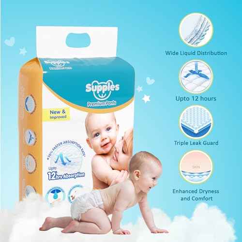 • SUPPLES PREMIUM DIAPER PANTS: Choosing the diaper for your baby is an important step in ensuring your little one comfort during the day as well as overnight. We understand that nothing is more important than the comfort of your little baby. With Supples P