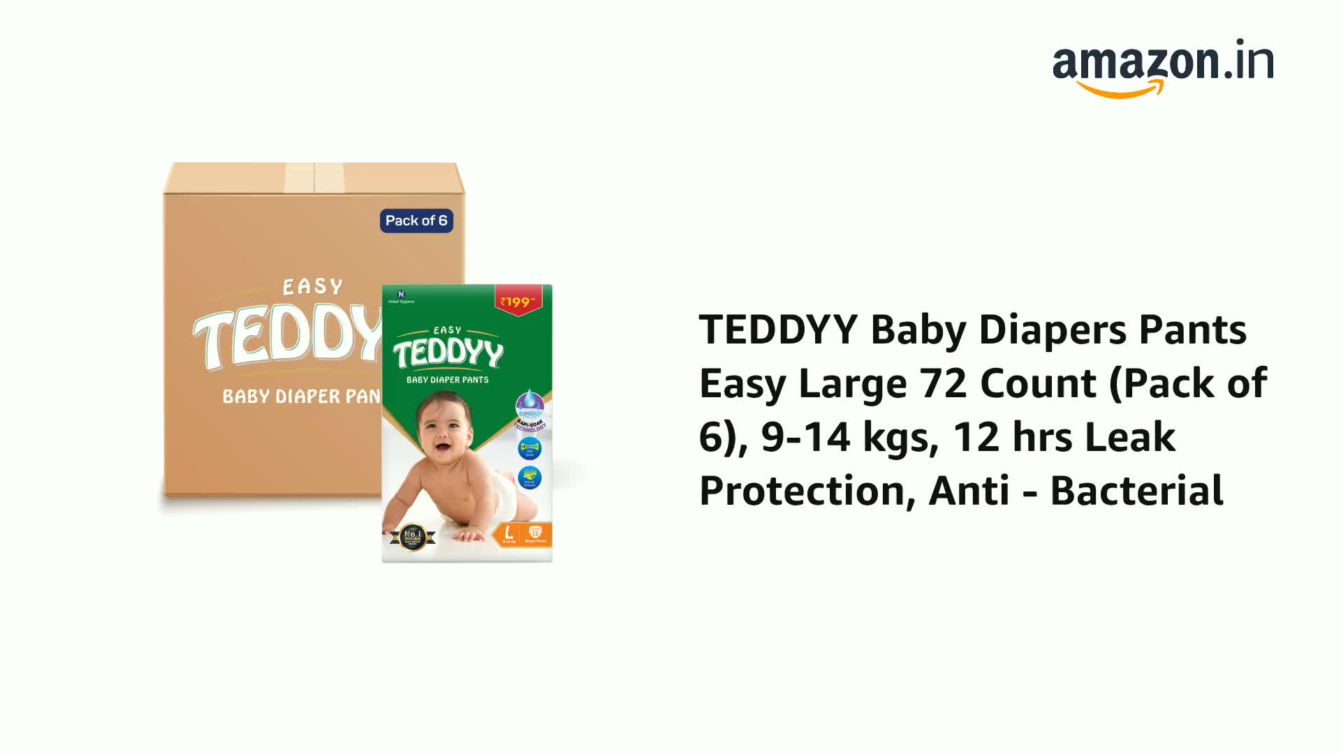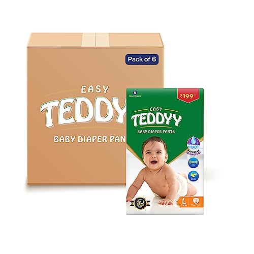 TEDDYY Baby Diapers Pants Easy Large 72 Count (Pack of 6), 9-14 kgs, 12 hrs Leak Protection, Anti - Bacterial