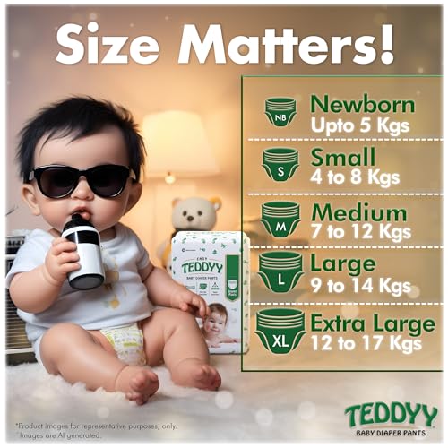 TEDDYY Baby Diapers Pants Easy Medium 136 Count (Pack of 4) 7-12 kgs 12 hrs Leak Protection Anti - Bacterial