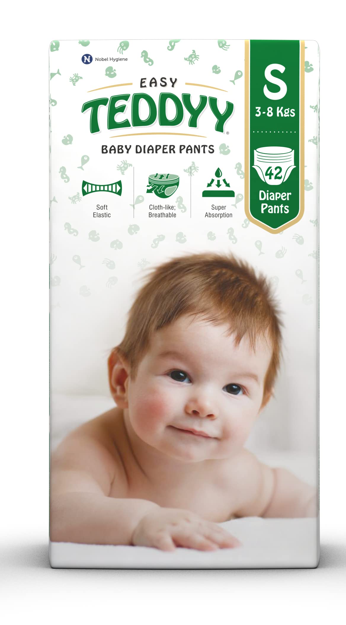 TEDDYY Baby Diapers Pants Easy Small 42 Count (Pack of 1), 3-8 kgs, 12 hrs Leak Protection, Anti - Bacterial
